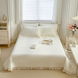 91探店【紫碧螺】 暗提花水洗棉麻绗绣欧式床盖 双面设计 兼具实用和美观